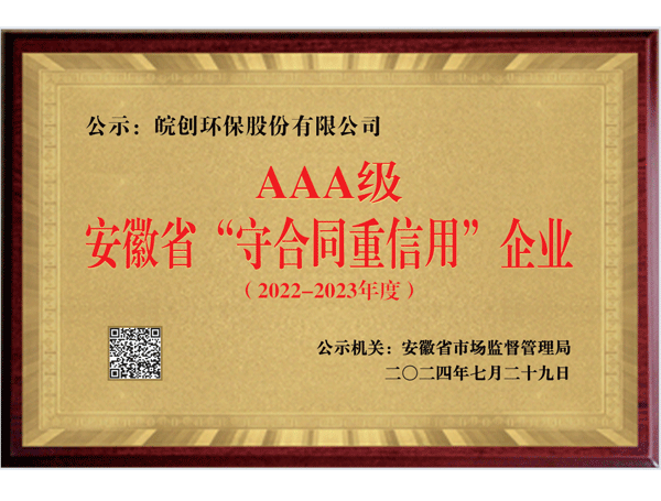 2022-2023 AAA level Anhui Province "Contract abiding and Creditworthy" Enterprise